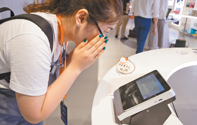 圖為參觀者在體驗(yàn)嵌入式虹膜識(shí)別儀。新華社記者 金立旺攝 中國(guó)科學(xué)院應(yīng)用成果展暨中科院硬科技—科技服務(wù)網(wǎng)絡(luò)計(jì)劃雙...